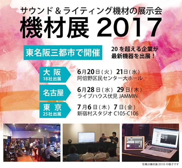 大阪・名古屋・東京の3箇所で行われるe-spec株式会社主催 「機材展2017」次回は来週 6月28日(水)・29日(木) 名古屋JAMINで開催されます!!